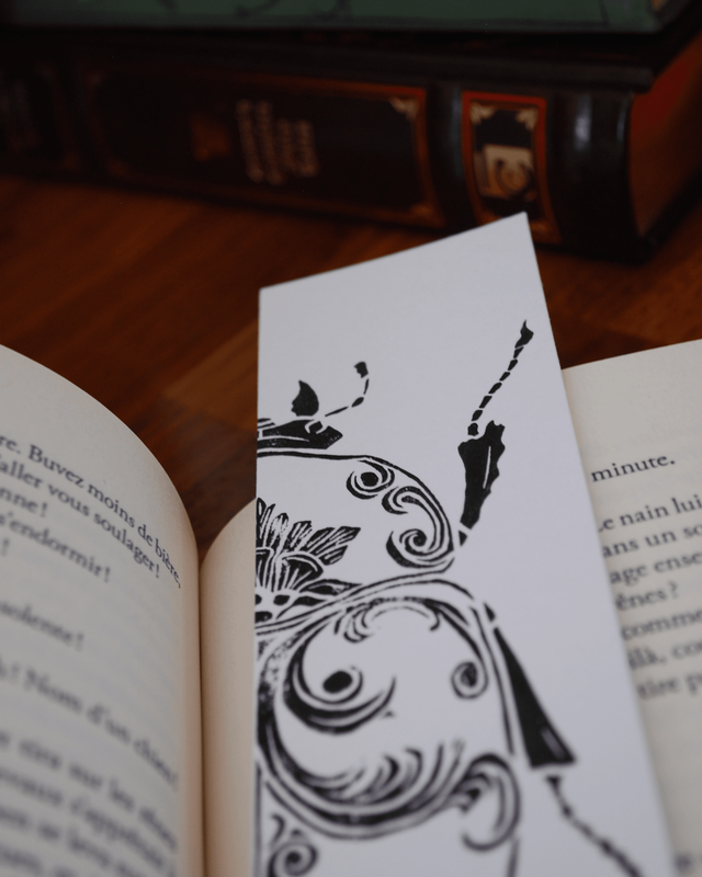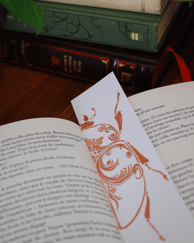 Le marque-page peut représenter la partie droite ou la partie gauche du scarabée, il vous sera possible de me laisser une note au moment de passer commande si vous préférez avoir un côté plutôt que l'autre mais je ne pourrai pas garantir d'en avoir toujours en stock. Il se peut donc que cette demande ne soit pas satisfaite et que vous receviez malgré tout l'autre version si malheureusement je n'en ai plus.