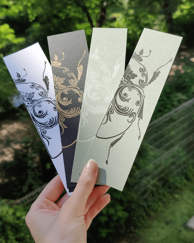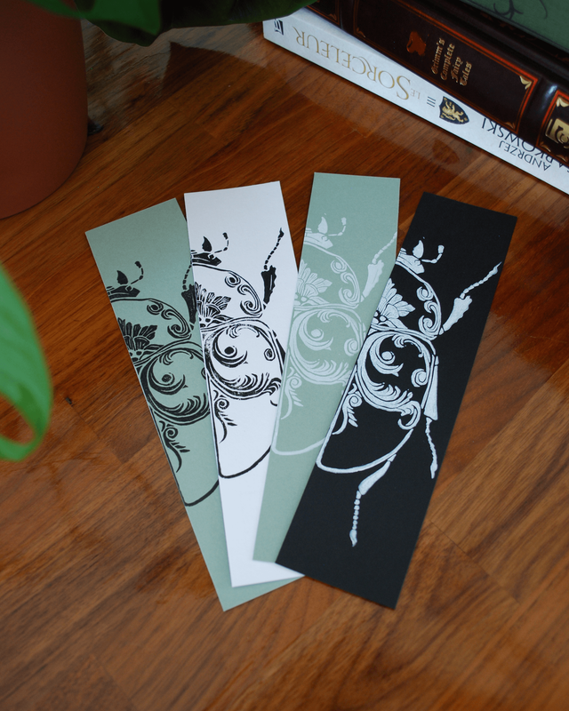 Le marque-page peut représenter la partie droite ou la partie gauche du scarabée, il vous sera possible de me laisser une note au moment de passer commande si vous préférez avoir un côté plutôt que l'autre mais je ne pourrai pas garantir d'en avoir toujours en stock. Il se peut donc que cette demande ne soit pas satisfaite et que vous receviez malgré tout l'autre version si malheureusement je n'en ai plus.