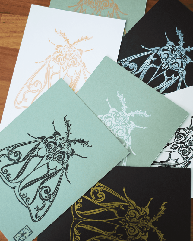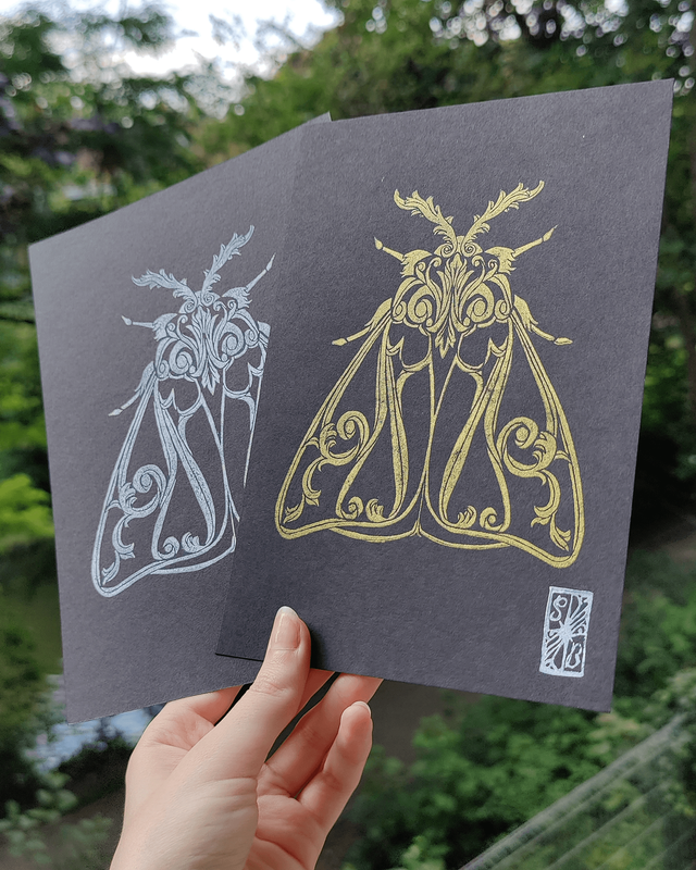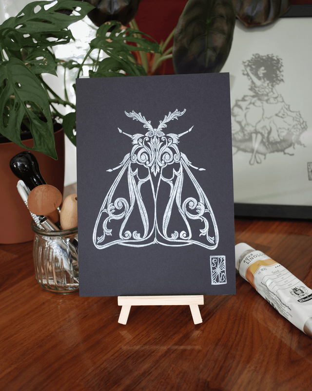 Impression en linogravure réalisée à la main sur du papier d'art