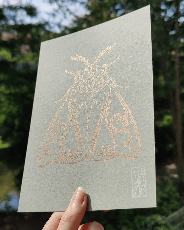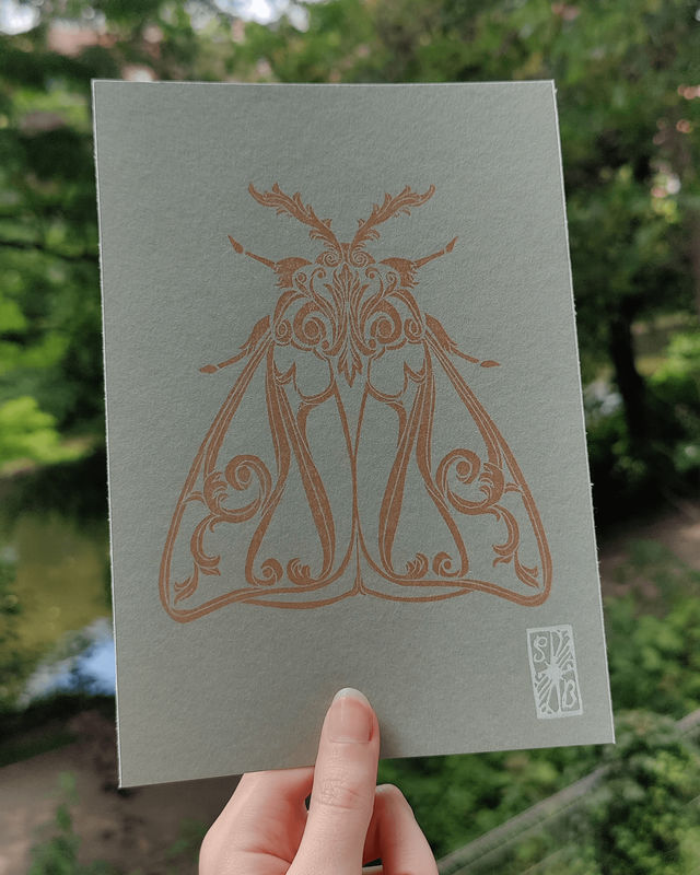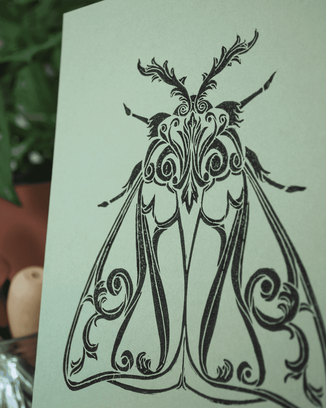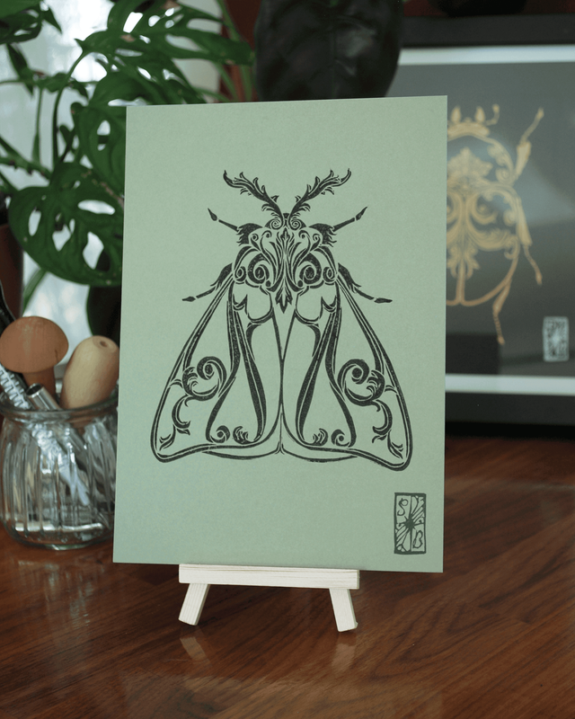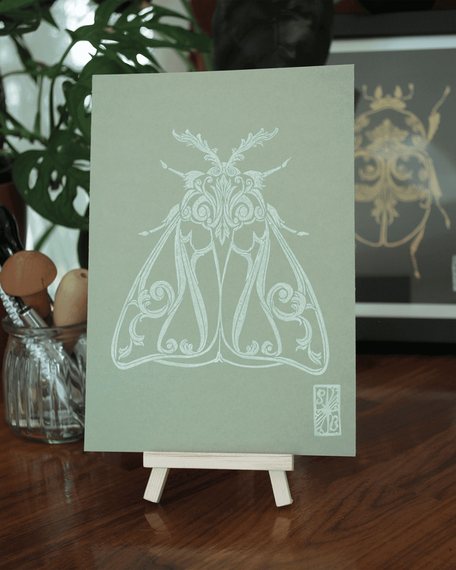 Impression en linogravure réalisée à la main sur du papier d'art