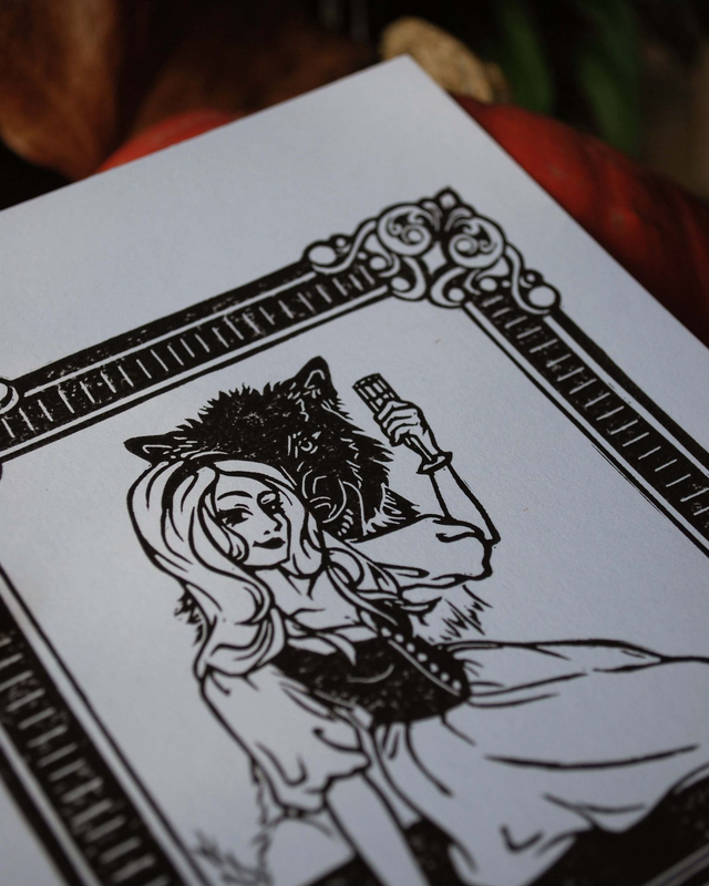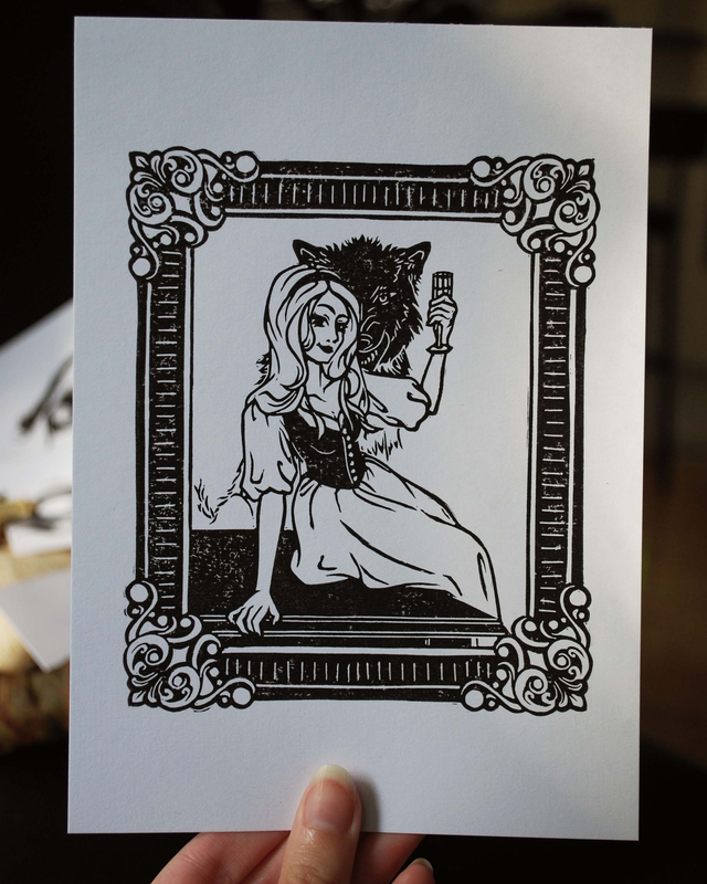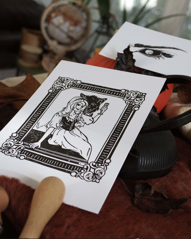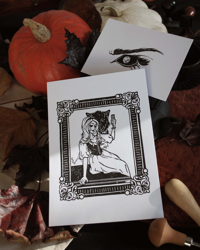Lot de 2 linogravures originales, gravées et Imprimées à la main sur un papier recyclé de qualité sans acide de 250g/m2 au format A5 et A6