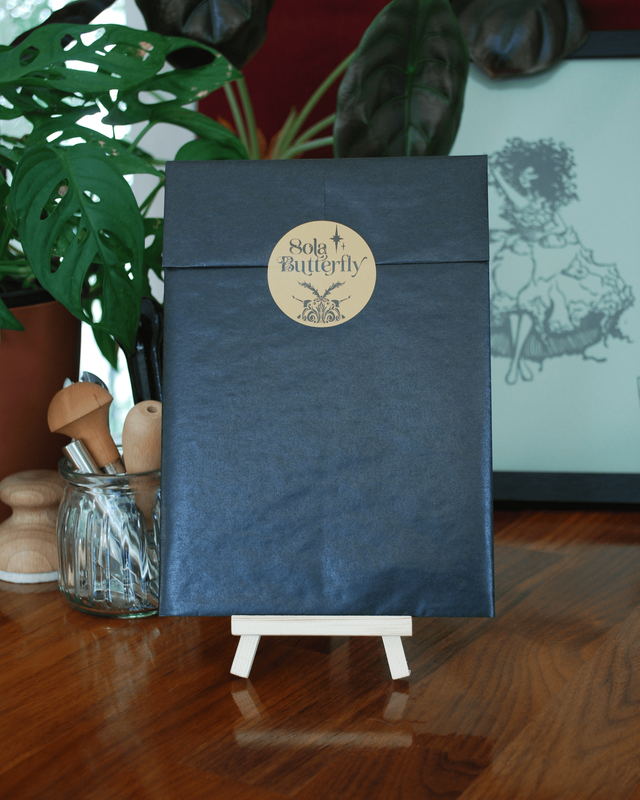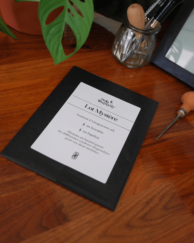 Ces lots sont réalisés à partir d'impressions qui ont plus d'irrégularités que celles vendues à l'unité, elles peuvent avoir des zones avec un peu moins d'encre ou plus de traces d'encre autour du motif, c'est pourquoi ils sont à -25% du prix d'origine des œuvres qui restent cependant toutes très jolies et encore plus uniques que les autres